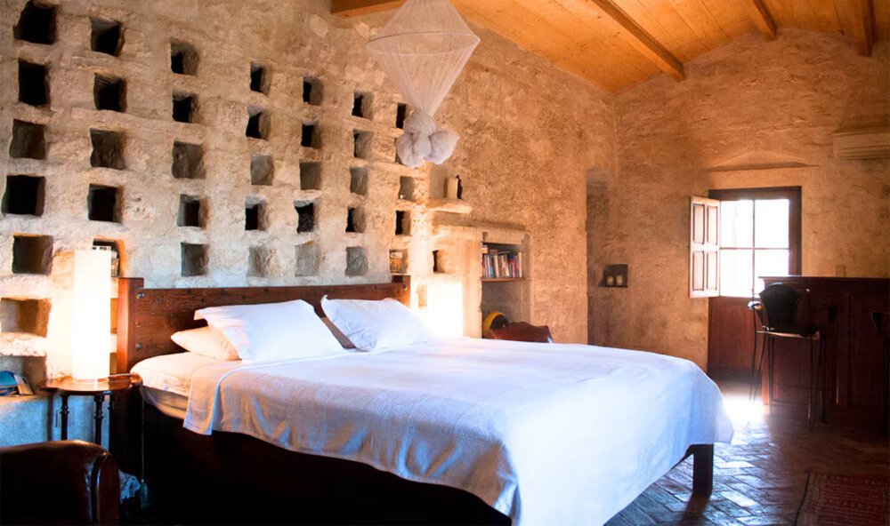This unique air-conditioned private suite combines centuries-old charm and contemporary luxury: a romantic bedroom starring an 18th-century carved antique wardrobe, and a contemporary lounge with leather sofas, grand piano and large flat-screen TV—perfect for stylish soirées or quiet unwinding.